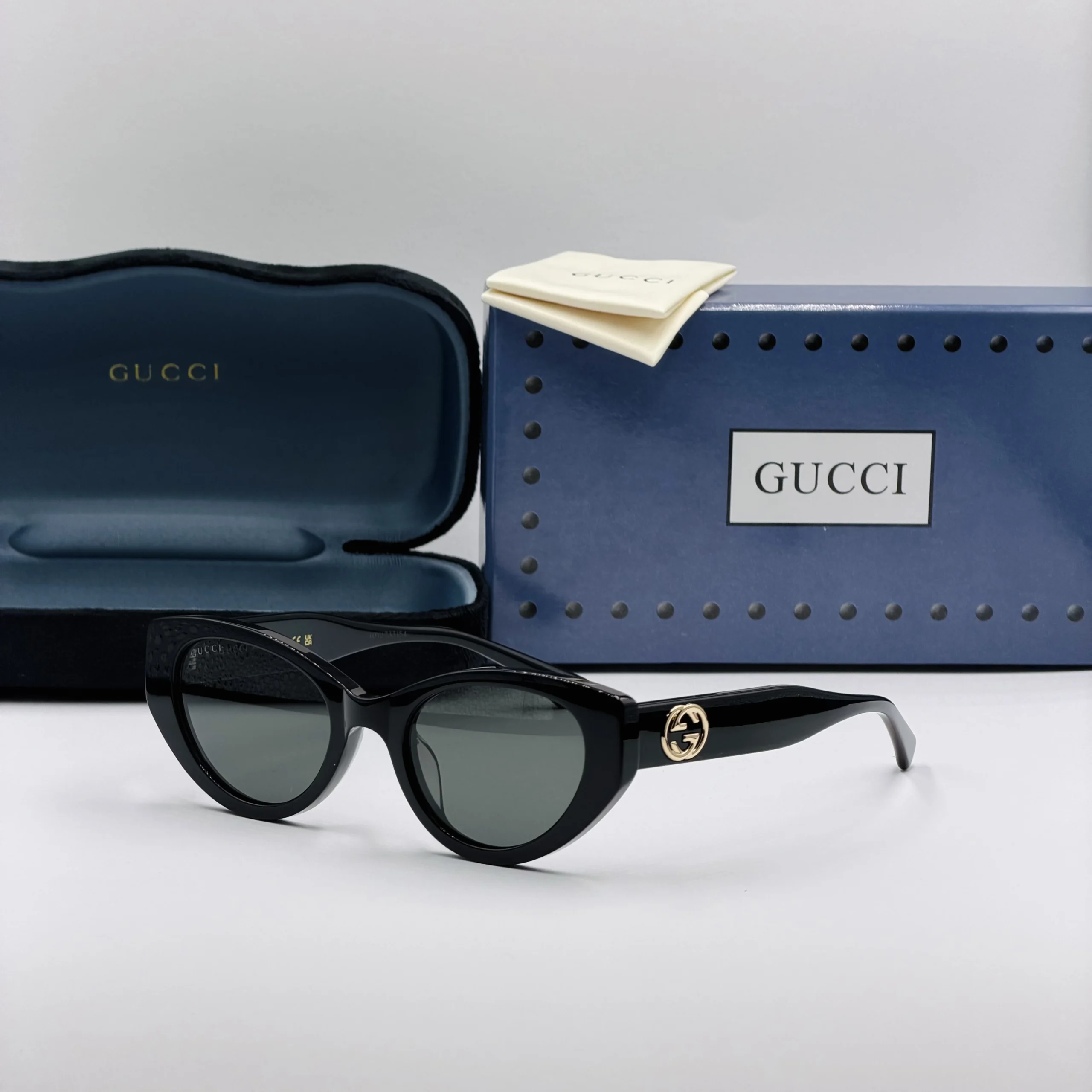 ces paires de lunettes sont livrées avec un étui GUCCI et un chiffon de nettoyage. Full Packaging lunettes GUCCI