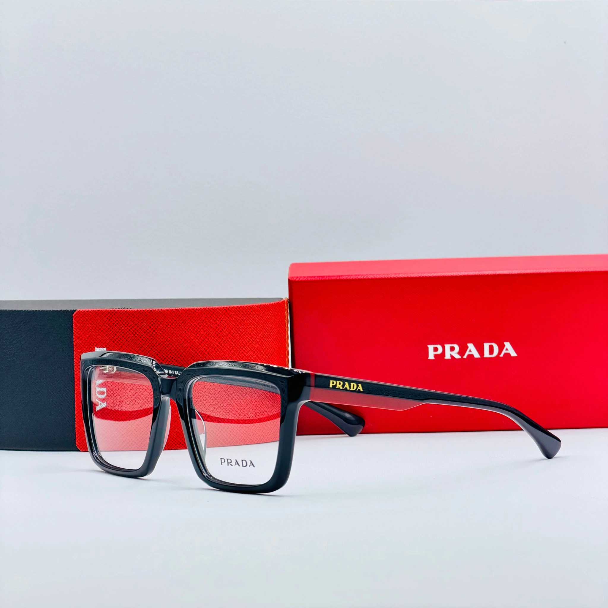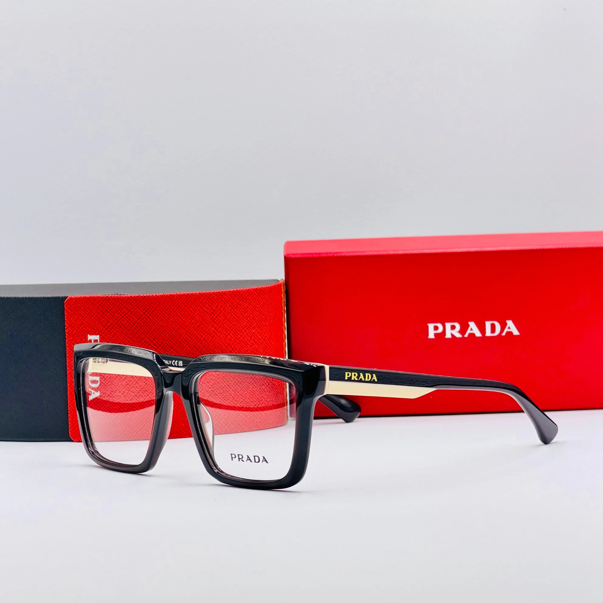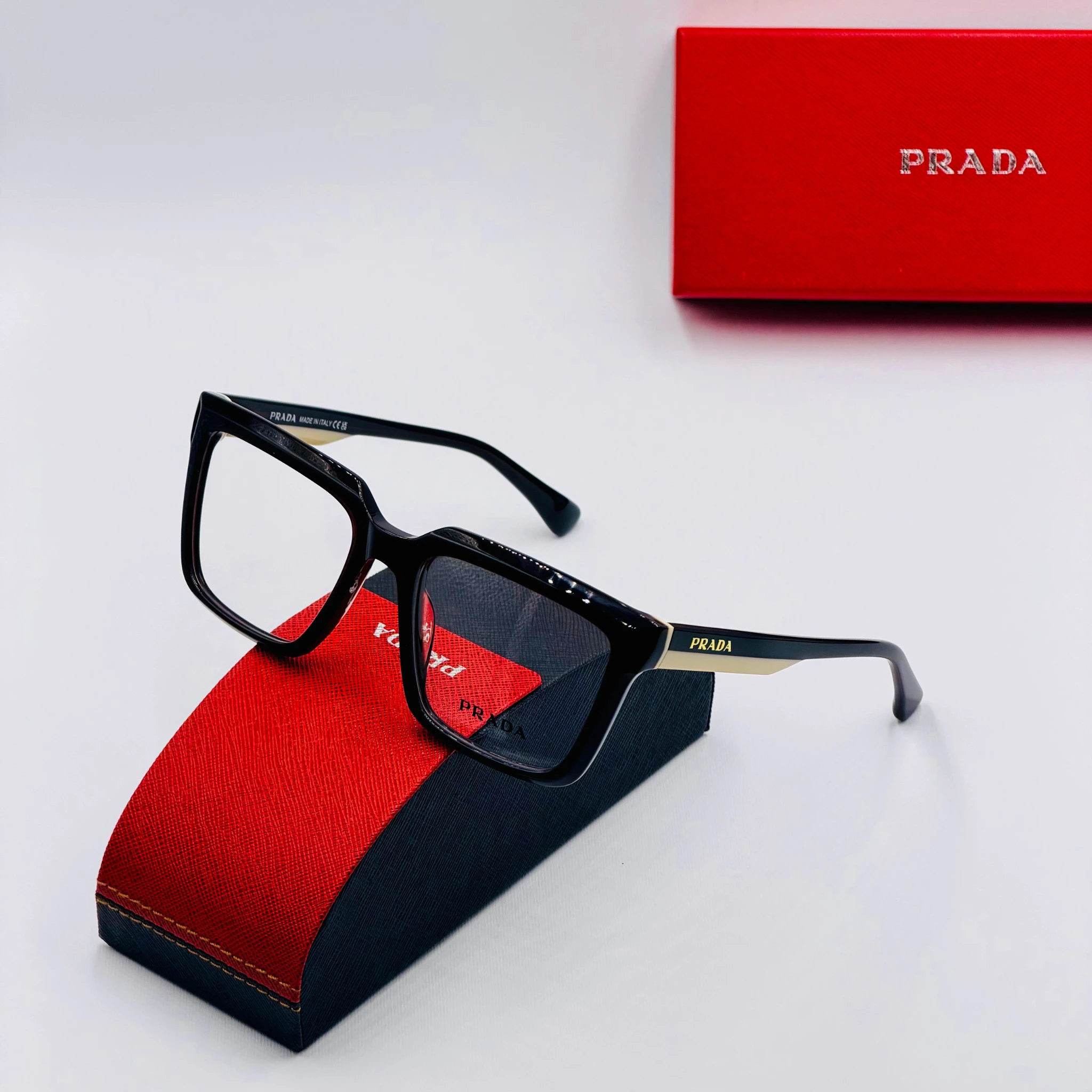 ces paires de lunettes sont livrées avec un étui PRADA et un chiffon de nettoyage. Full Packaging lunettes PRADA