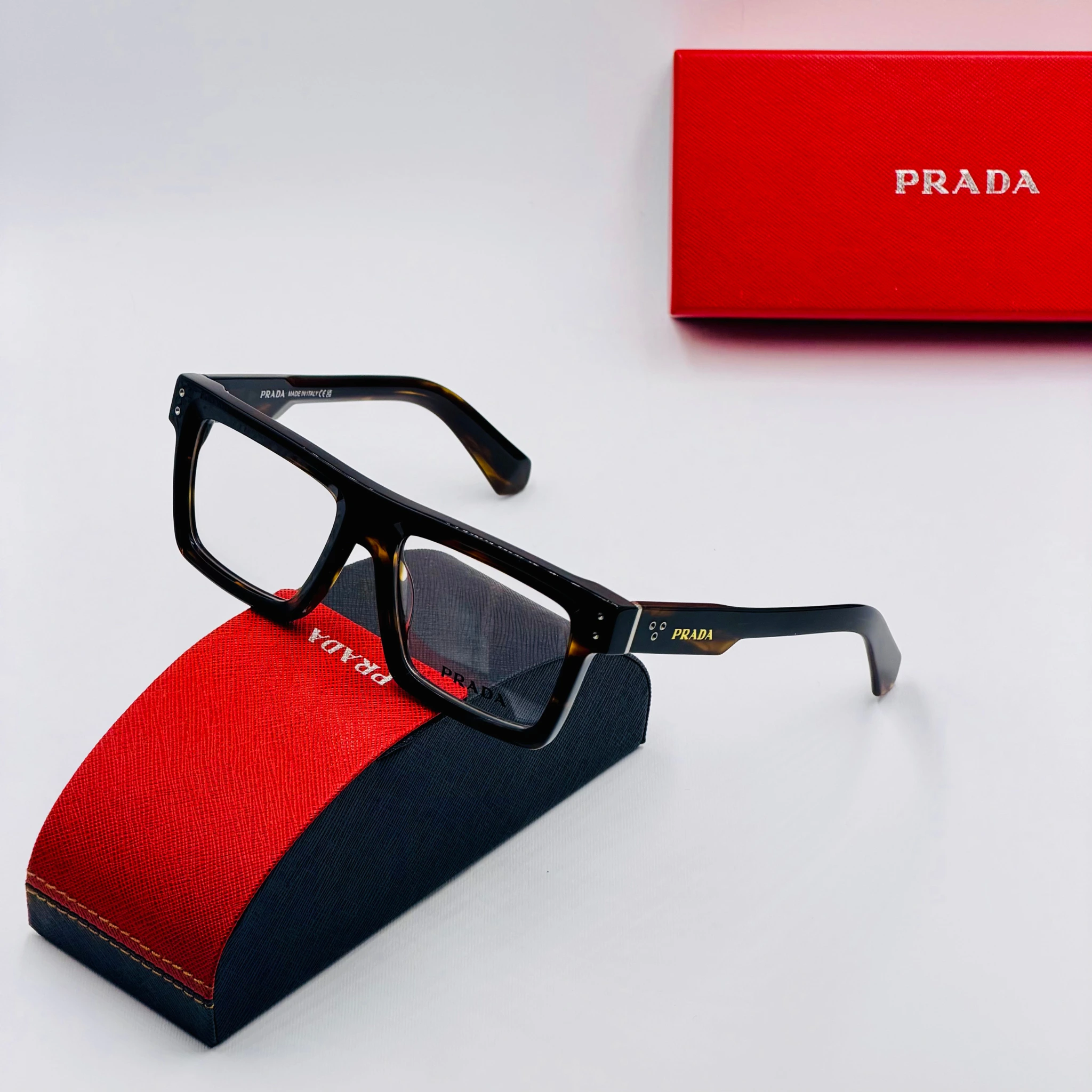 ces paires de lunettes sont livrées avec un étui PRADA et un chiffon de nettoyage. Full Packaging lunettes PRADA