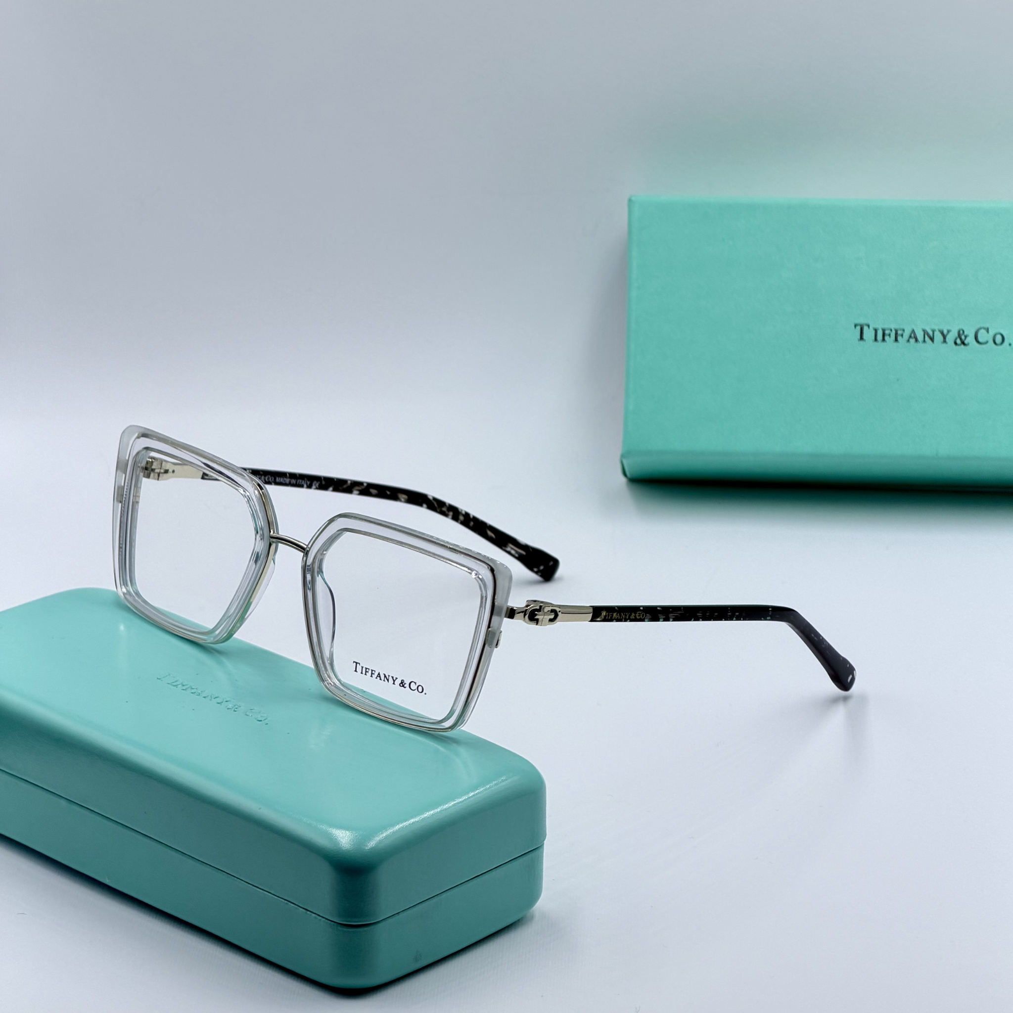 ces paires de lunettes sont livrées avec un étui Tiffany & Co et un chiffon de nettoyage. Full Packaging lunettesTiffany & Co.